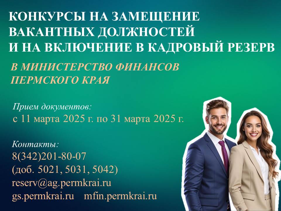 - Министерство финансов Пермского края объявляет конкурсы на замещение вакантных должностей
